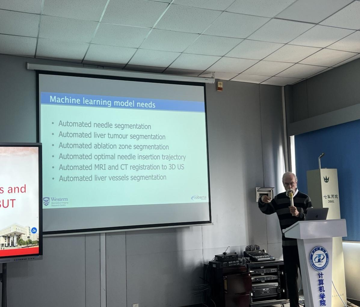 10月24日上午,由湖北省教育厅“世界著名科学家来鄂讲学计划”项目资助,受我校计算机学院、智能科学与技术引智创新示范基地的邀请,加拿大西安大略大学Robarts研究所Aaron Fenster教授、Terence Peters教授来校讲学访问。