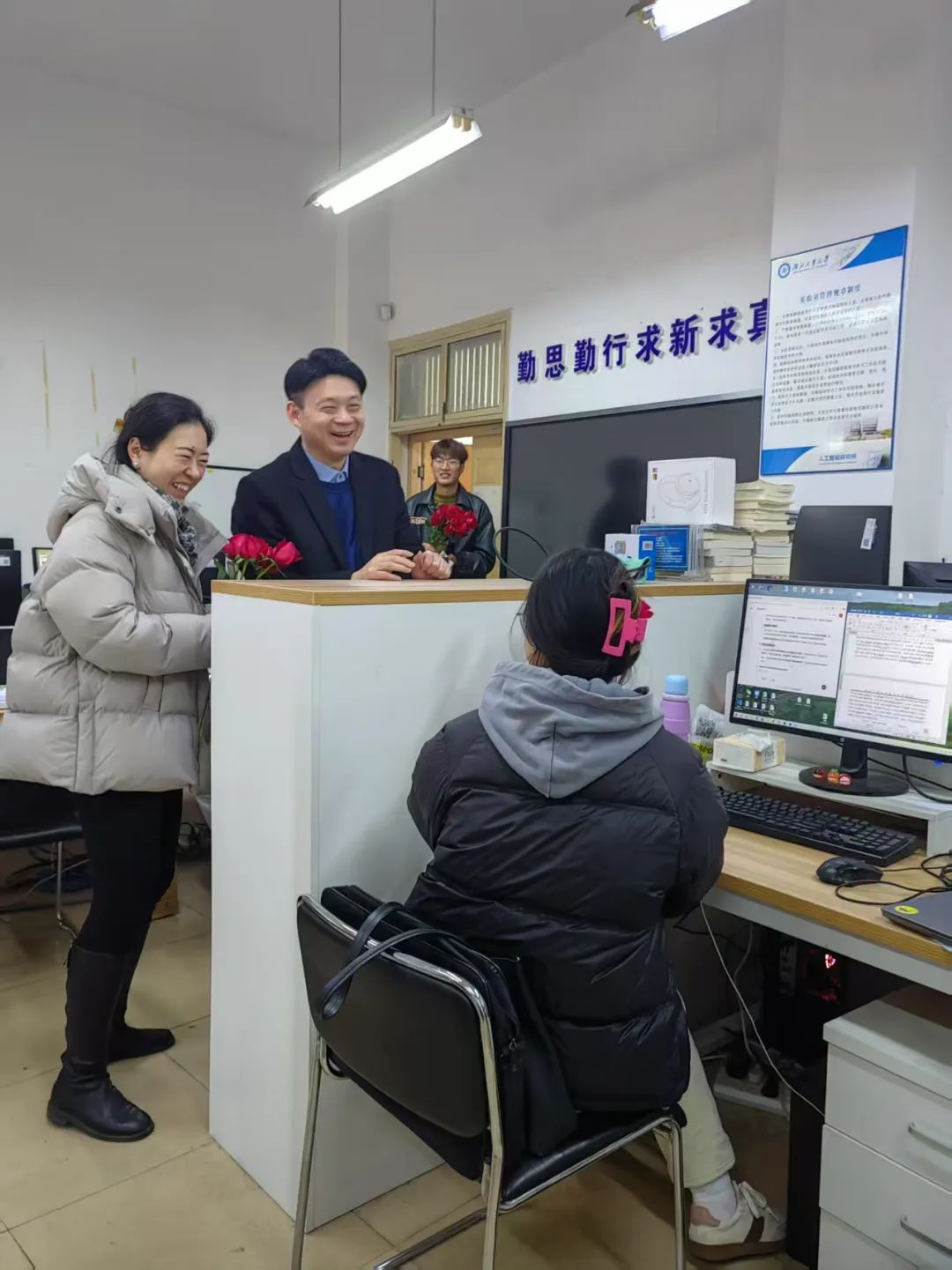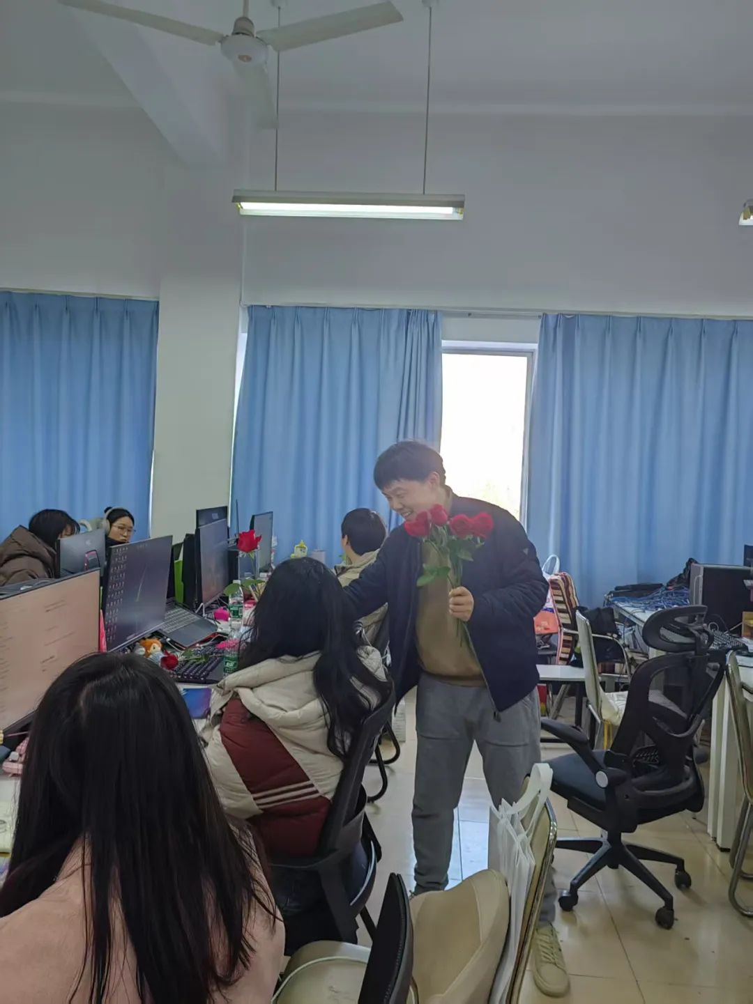 最后为学院全体实验室女生送上节日玫瑰与定制祝福贺卡,通过简短互动传递节日问候,营造温馨氛围!