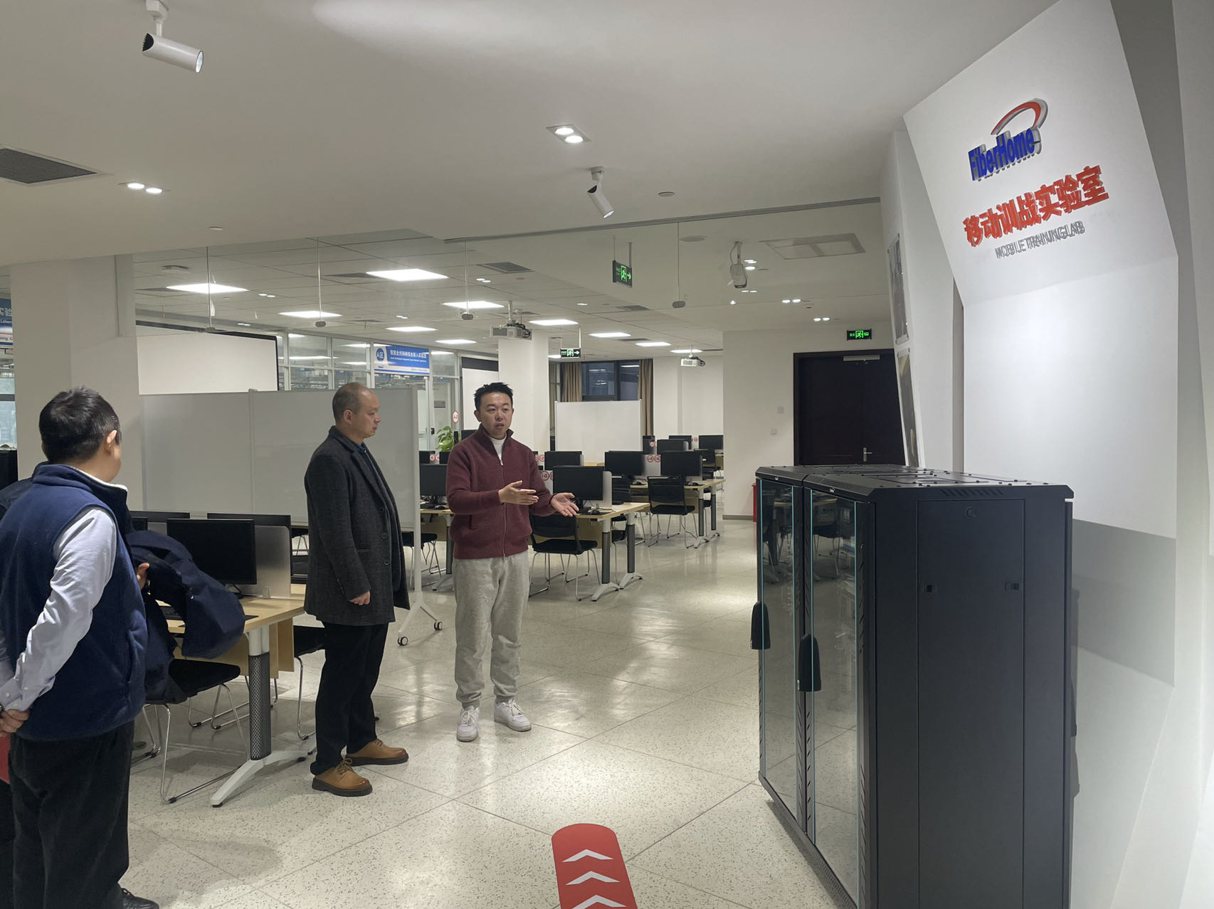烽火通信科技股份有限公司运作管理部李振国详细介绍了企业发展历程、主营业务,并带领大家参观了公司研发部门,介绍了公司目前的工作核心。通过现场交流,提出双方可进一步加强合作交流,推动技术相关专业学生参与公司实际项目,共建校企合作课程,针对当今人工智能的发展培养高质量人才。