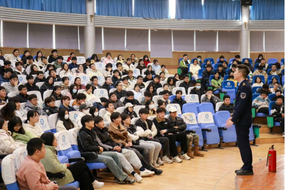 培训中,教官针对校园火灾特点,以消防“四个能力”为切入点,重点讲解了如何预防火灾的发生、如何使用灭火器、火灾发生初期应急处置方法、火场逃生注意事项以及应急救援技能等内容,教官扎实的理论功底和丰富的实践经验让参训师生收获满满。