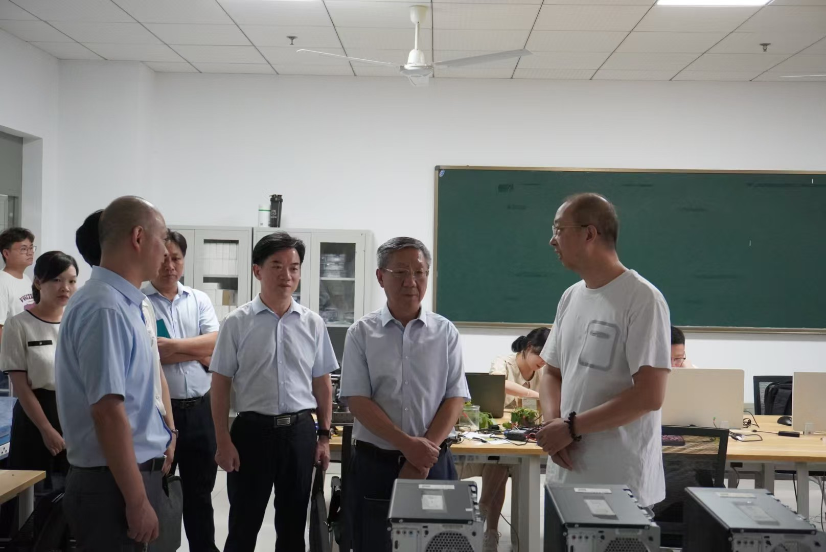 8月16日,湖北省科技厅副厅长杜耘现场考察绿色算力网络湖北省重点实验室申报工作,校党委常委、副校长宋小春陪同考察。