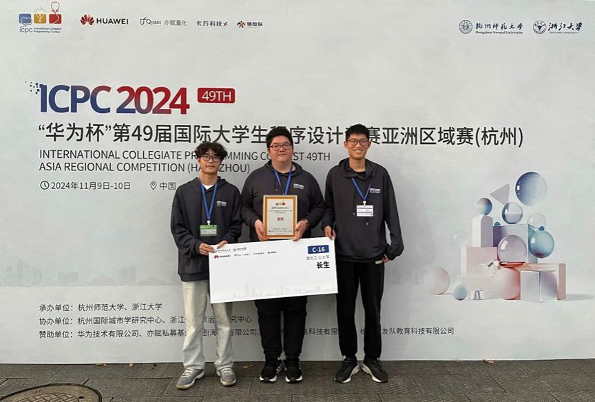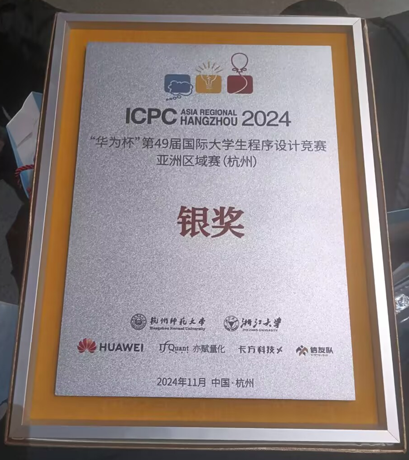 11月10日,备受瞩目的“华为杯”第49届国际大学生程序设计竞赛亚洲区域赛(杭州站)在杭州师范大学仓前校区圆满落下帷幕。经过5个小时紧张刺激的编程挑战,我院22级由杨思腾、陈奕澄、陈晓辉三位同学组成的“长生队”凭借卓越的实力和团队精神,荣获银奖,为学院争光。
