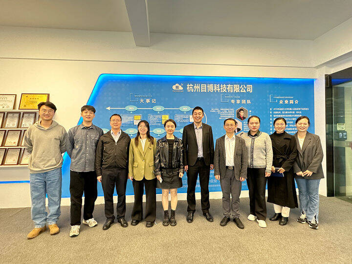 在杭州目博科技有限公司,公司人事部负责人翁秋雅向学校介绍公司企业文化、发展前景和人才需求情况,双方就人才培养、实习就业以及产学研合作等方面展开座谈交流。