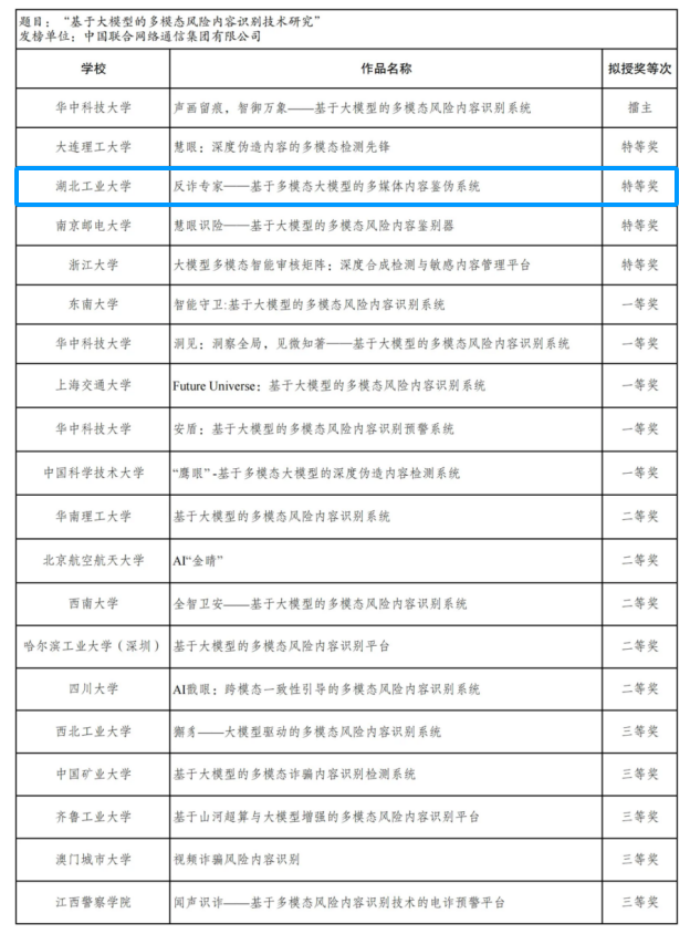 据悉,2024年度“揭榜挂帅”专项赛设置高校学生赛道和青年科技人才赛道,共有410余所高校和企业的1950余件作品入围终审决赛,终审决出各选题“擂主”、特等奖等奖次最终获奖团队。我院《反诈专家——基于多模态大模型的多媒体内容鉴伪系统》《芯瑕慧眼——高精度PCB小目标缺陷检测系统》两个项目获特等奖,《“面向新质生产力的AI质检助力制造业数智化创新”比赛方案》《智联寻踪——基于数字孪生的高精度无源融合大型室内外定位系统》两个项目获一等奖。