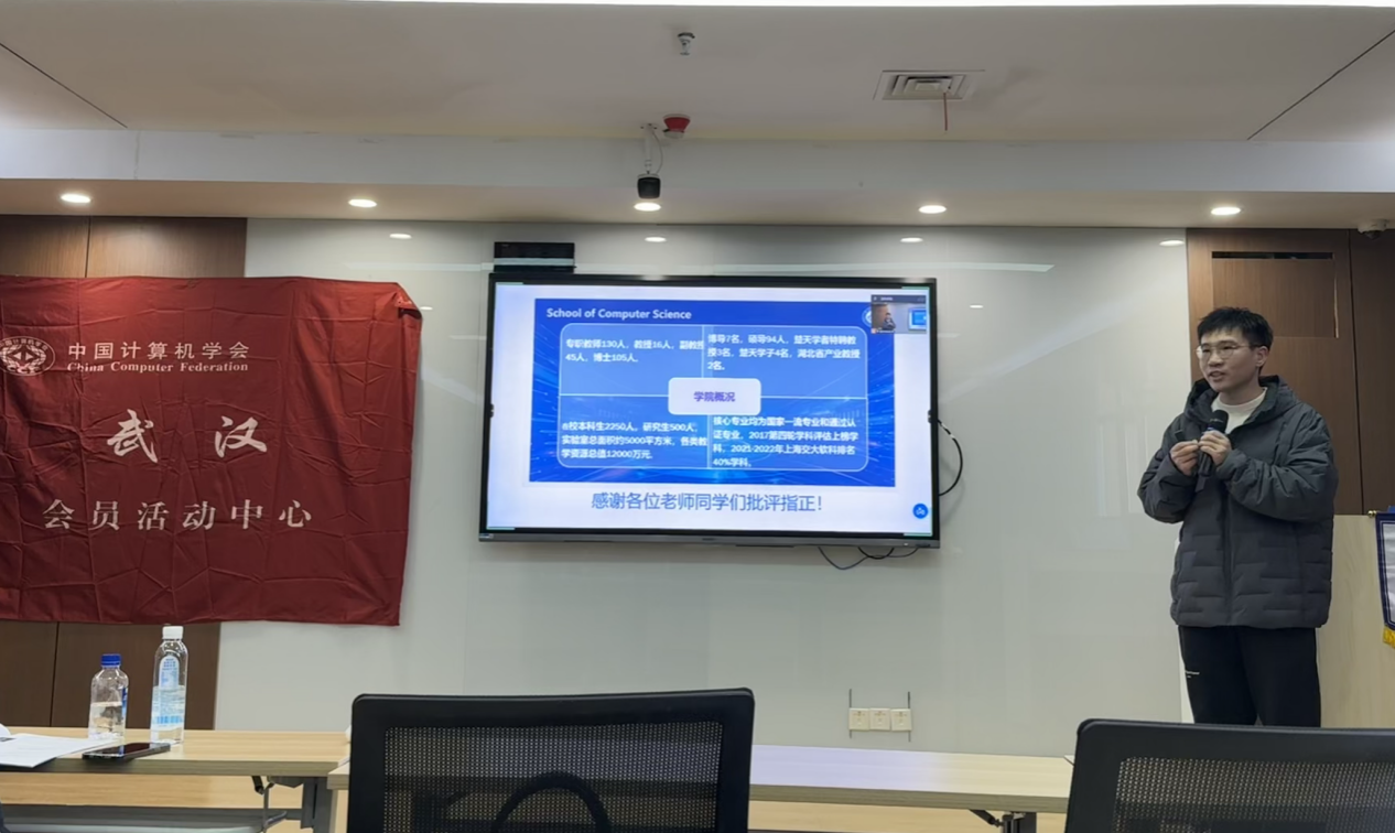 据悉,CCF武汉会员活动中心(简称:CCF武汉)成立于2012年11月24日。本次论坛分别面向武汉地区高校青年教师和优秀博士生,共邀请到由武汉地区各高校推荐的13位青年教师和10位优秀博士生,报告主题涵盖计算机系统结构、计算机理论、人工智能、信息安全、生物信息学等领域。