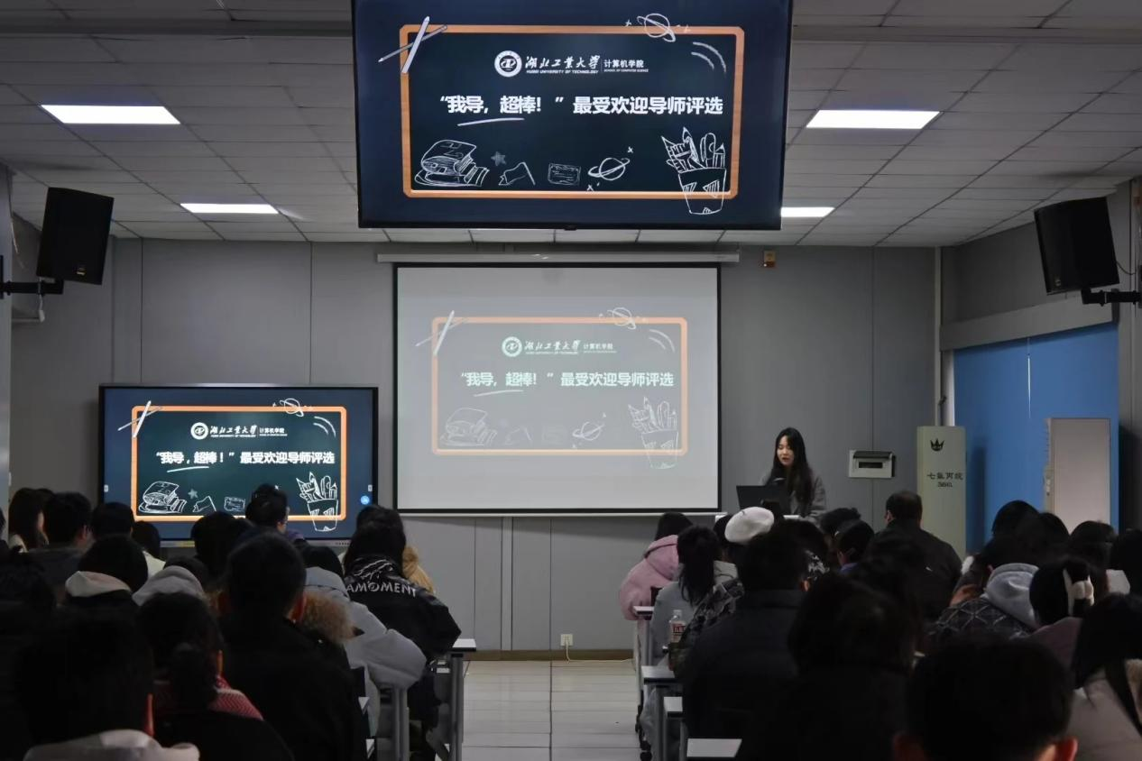 2024年12月26日,计算机学院在科技楼410成功举办了“我导 超棒!”最受欢迎导师评选活动。该活动旨在深入挖掘出一批兼备优秀教学技能与关爱学生、受到全院学生普遍认可、具有广泛影响力的优秀教师典型。同时,表彰在教学与指导中表现突出的导师,促进学生与导师之间的交流与理解,建立良好的师生关系。鼓励所有导师不断提升教学质量和指导学生的能力,营造积极向上的组内氛围,增强学生对学校的归属感和认同感。