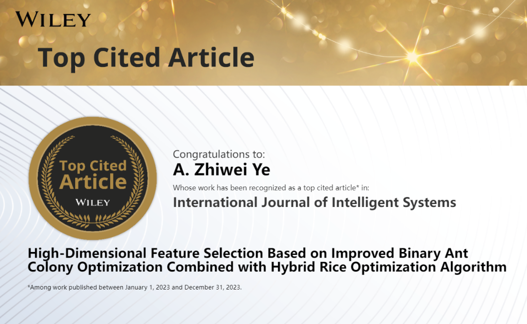近日,国际知名学术期刊《International Journal of Intelligent Systems》发布了2023年度最高引用量文章榜单,我院叶志伟教授的研究成果成功入选前十名。