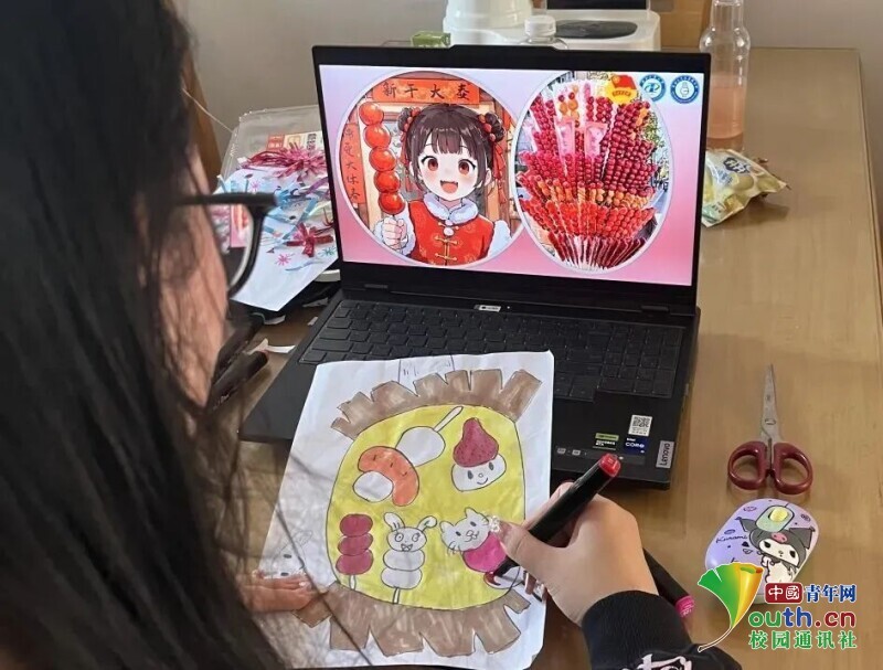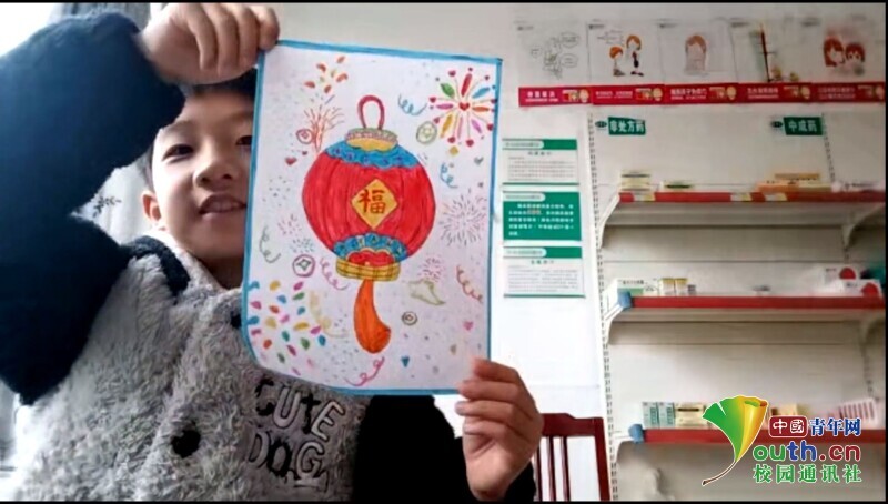 图为小朋友展现自己绘画的灯笼(程怡婷 供图)