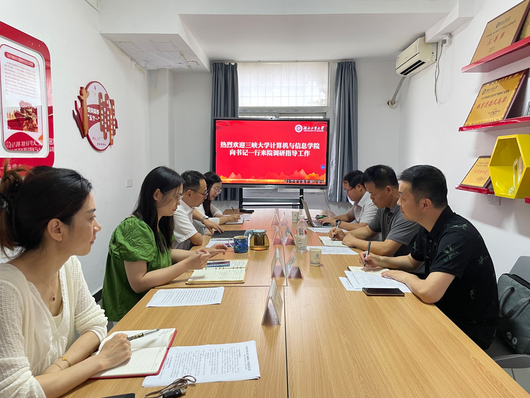 5月20日下午,三峡大学计算机与信息学院党委副书记向敬安率学工团队到访湖北工业大学计算机学院,专题调研“一站式”学生社区建设。计算机学院党委副书记杨少飞及全体辅导员参与座谈交流。