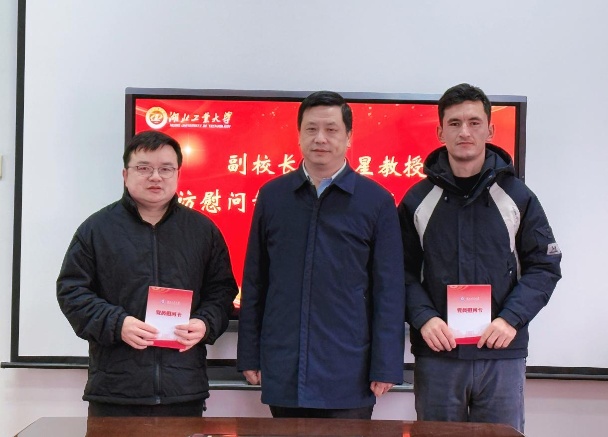 1月21日,副校长张晓星率学校组织部副部长陈鹏深入我院,开展党员教师走访慰问活动,亲切看望韦超、艾力扎提·艾合麦提两位教师代表,为他们送去党组织的关怀与新春的诚挚祝福。