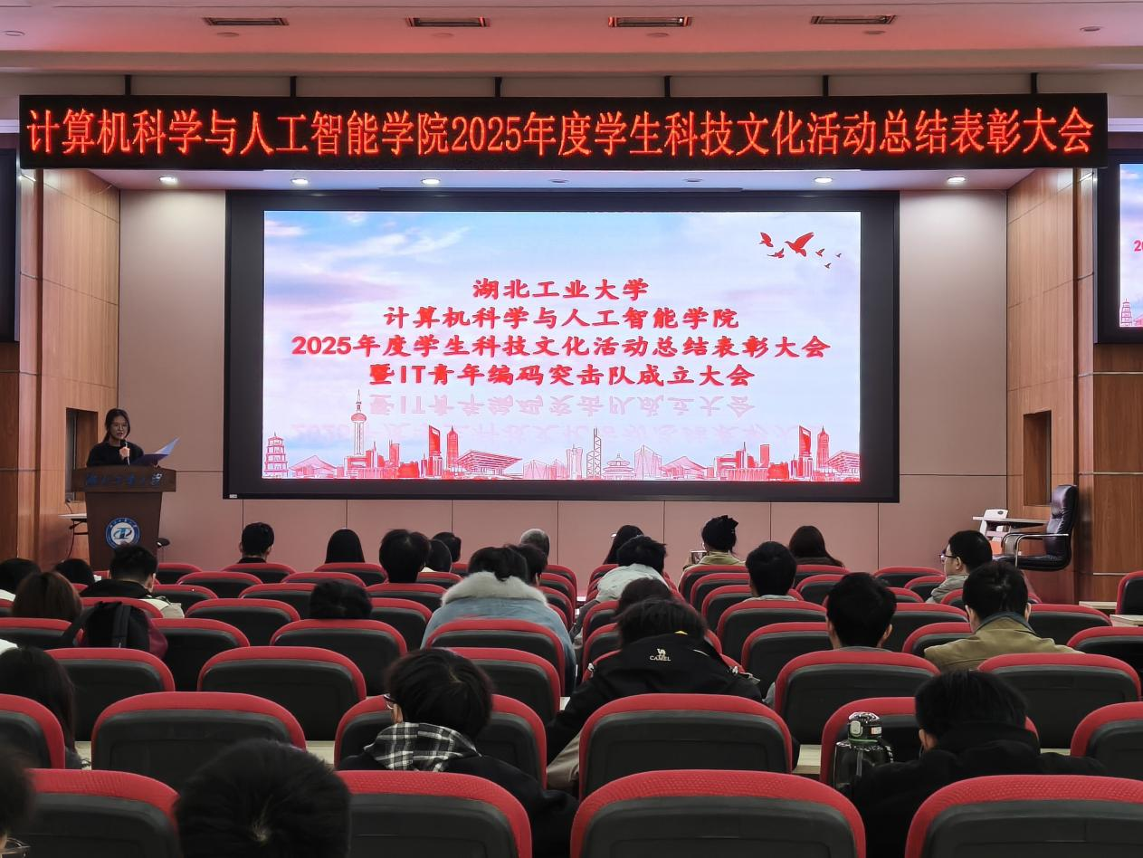 2025年12月26日,计算机科学与人工智能学院2025年度学生科技文化活动总结表彰大会暨IT青年编码突击队成立大会在博学堂举行。院党委副书记杨少飞、全体辅导员、2025年度科技文化活动获奖同学及学院学生代表参会。