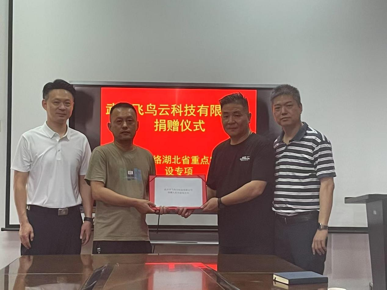 7月22日,武汉飞鸟云科技有限公司向我校捐赠签约仪式在科技楼401会议室举行,公司捐赠金额为600万元,主要用于绿色智能算力网络湖北省重点实验室专项建设。爱心企业代表、社会资源处和计算机学院领导班子部分成员出席捐赠仪式。